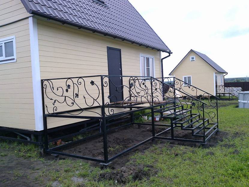 Также присматриваются к стилю изделия. В идеале оно должно соответствовать стилевому оформлению крыльца и экстерьера в целом. Можно обратить внимание на наличие вспомогательных элементов декора или попросту выбрать узор и рисунок вместо кованого полотна. Это смотрится невероятно интересно, выделяя крыльцо на фоне других аналогичных.