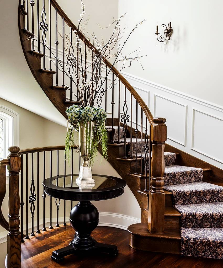- красивые кованые перила из чёрного металла придают интерьеру изысканный вид и легко подстраиваются под многие стили современного интерьера. Но лучше всего они сочетаются с классикой. Кованые ограждения долговечны, надёжны и просты в уходе.