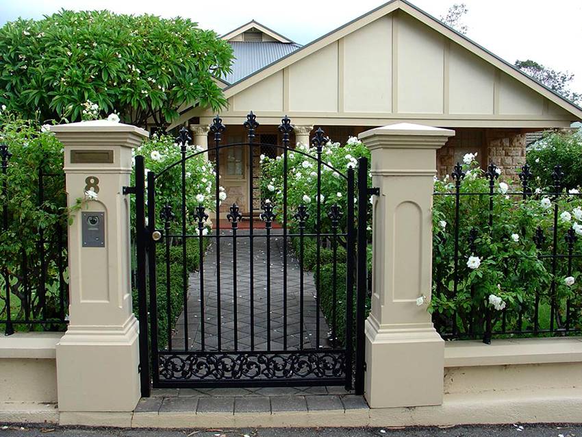 Кованые ворота достаточно универсальны, поэтому хорошо сочетаются с разными стилями