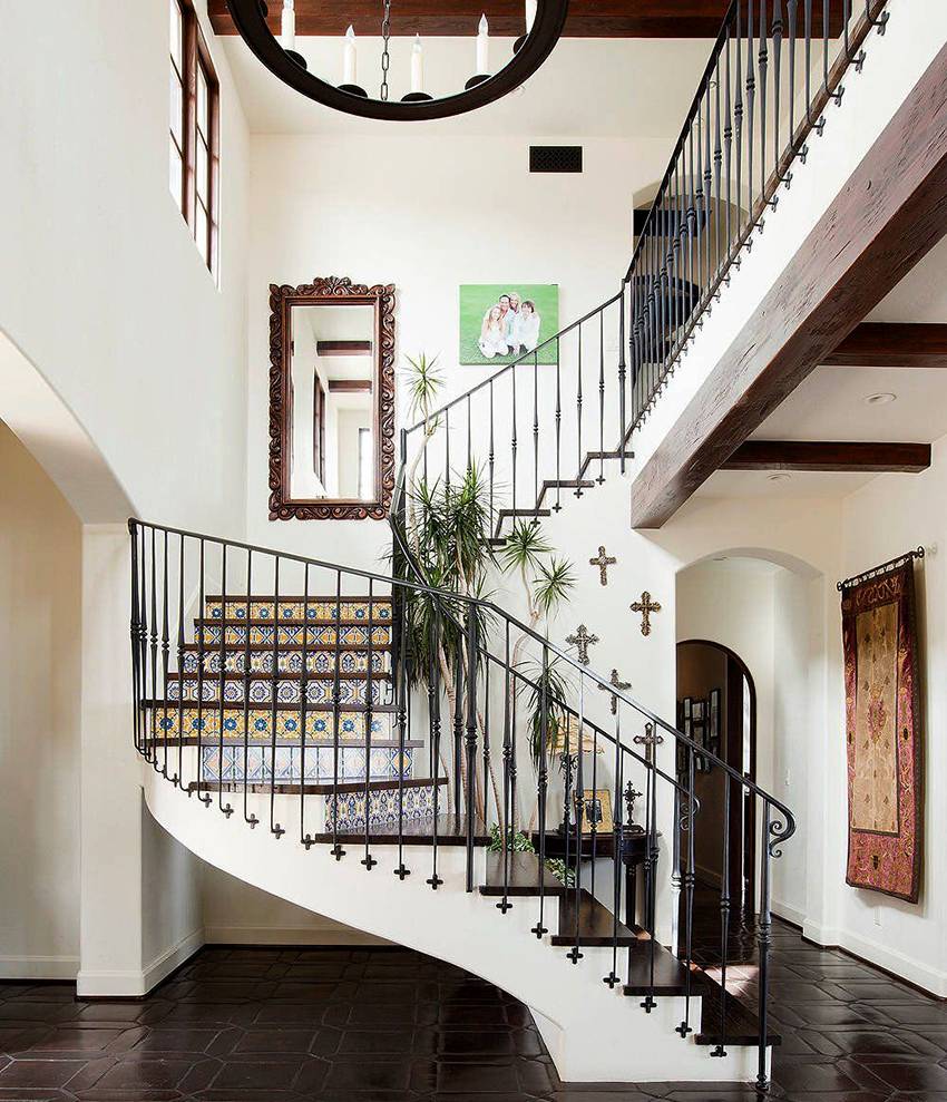 С каждым годом набирает популярность стиль модерн. Ограждения, оформленные подобным образом, отличаются сочетанием функциональности и изящества, что можно увидеть на фото. Кованые перила в доме такого типа содержат декоративные элементы, но не перенасыщены ими.