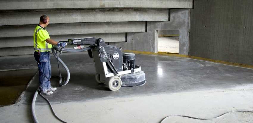 Как убрать строительную пыль с бетонного пола при помощи шлифовальной машинки