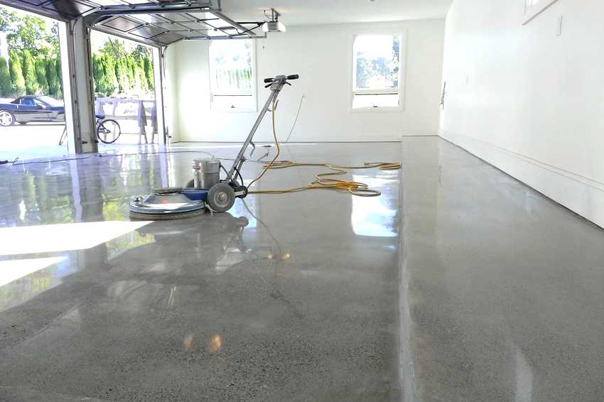 - Проводят повторное шлифование машиной и обеспыливание стяжки пола в гараже.