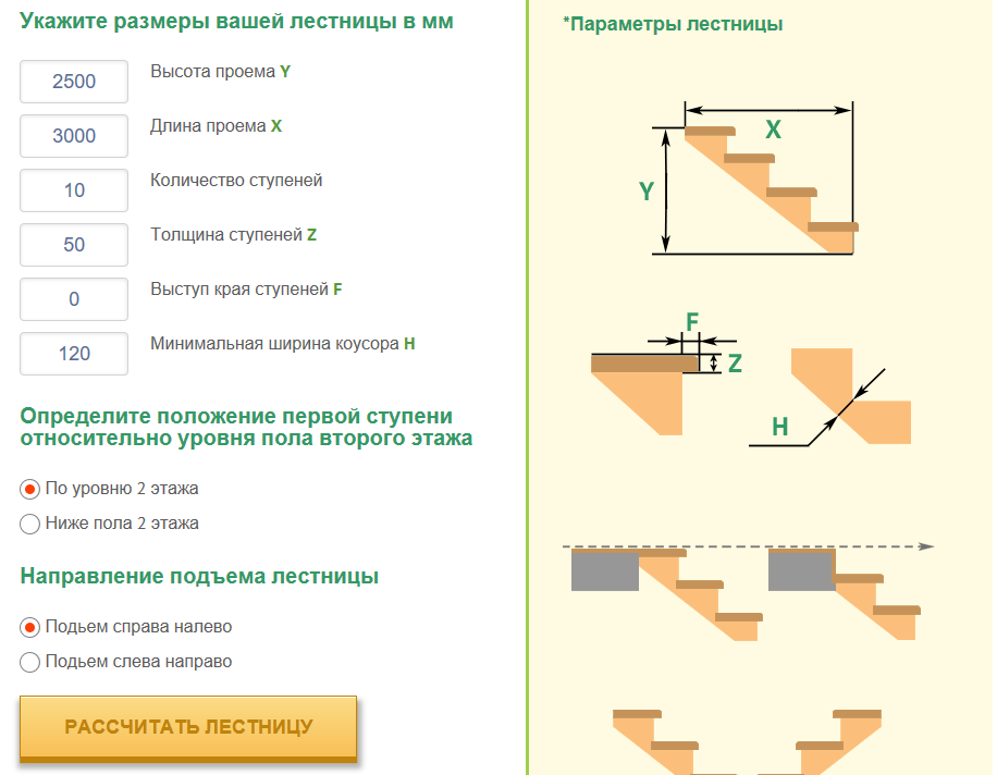 Проступи вырезают треугольной формы, ее размер позволяет задать винтовой спуск
