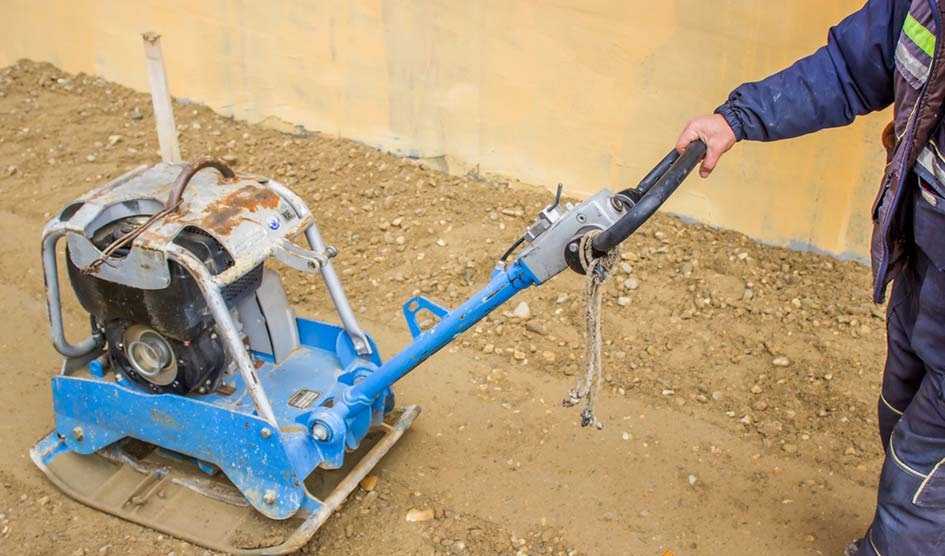 Песок, щебень и все остальные материалы, насыпаются слоями толщиной не более 5 см, разравнивается, затем трамбуется до высокой плотности. Слой считается утрамбованным, если на нем не остаются следы ног.