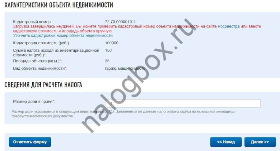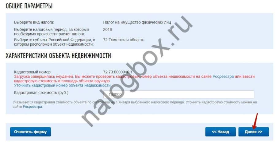 Калькулятор работает только по кадастровой стоимости.