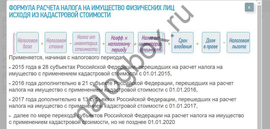 Формула расчета достаточно сложна. В зависимости от года, с которого в регионе применяется кадастровая стоимость, в ней используется коэффициент от 0,2 до 0,6. Общая формула имеет следующий вид: