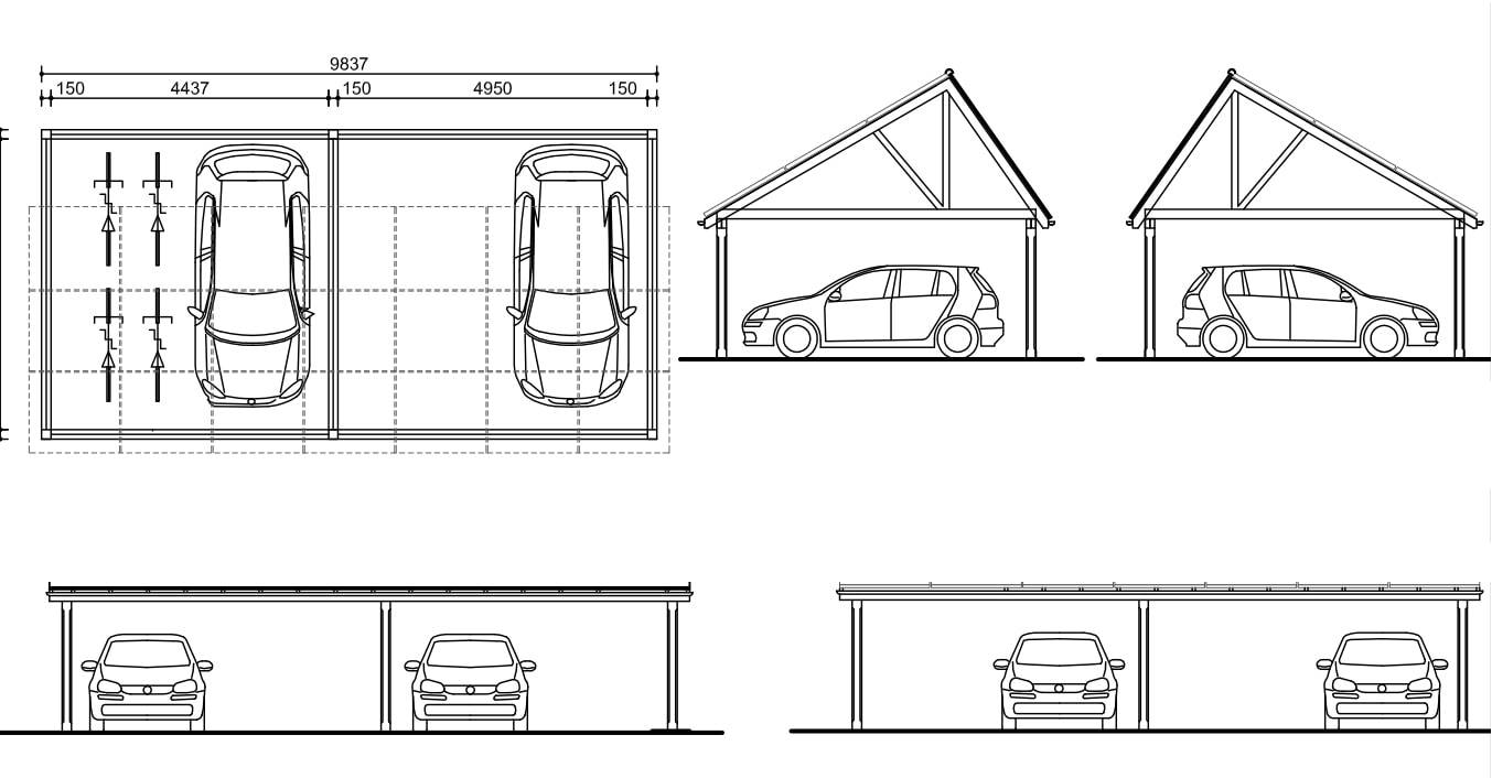 Форма навеса для двух авто выполняется, как правило, в следующих вариантах: