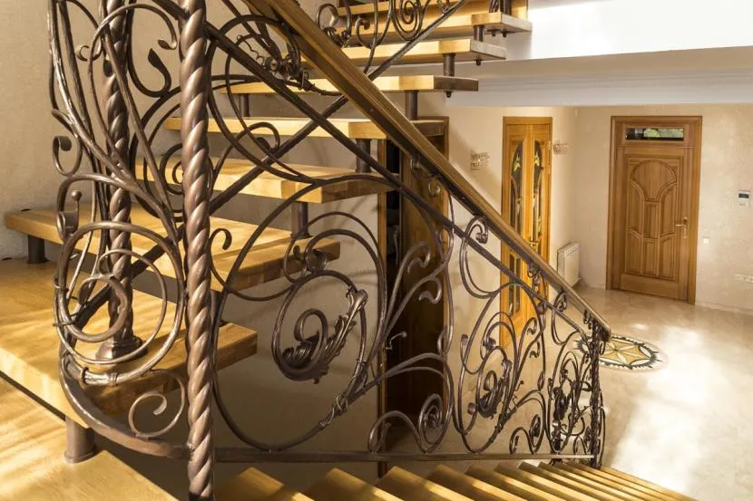 Кованые элементы используются в качестве украшения дизайна не одно столетие. Они выгодно выделяются на фоне других элементов интерьера, так как являются оригинальными и очень красивыми. Лестницы, украшенные металлическим орнаментом, пользуются большой популярностью. Такие конструкции чаще всего применяются в интерьерах частных домов и загородных коттеджей.