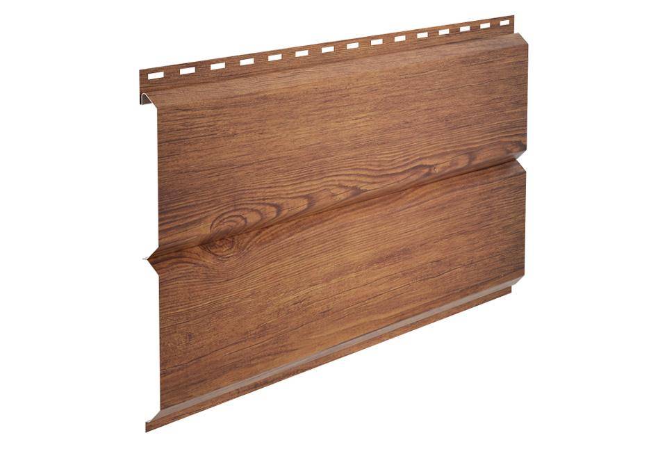 Главной особенностью металлосайдинга под брус является его форма, которая имитирует стену бревенчатого бруса. В остальном же (кроме технологических нюансов) структура данного материала схожа с остальными моделями металлосайдинга. Что представляет собой металлосайдинг под брус: