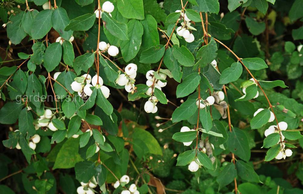 Снежеягодник относят к роду жимолостных. Сизо-зеленые листья, белые цветы с розовым оттенком дополняются ягодами. Изгородь выглядит очень необычно и нарядно. Такой кустарник подойдет для насаждений не более 125-130 см в высоту.
