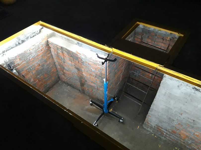 - Ширина должна быть достаточной, чтобы вам в ней было удобно работать. В то же время она ограничивается расстоянием между колесами автомобиля — у каждого колеса должно быть пространство для маневра. В среднем ширина смотровой ямы от 80 см и больше.
