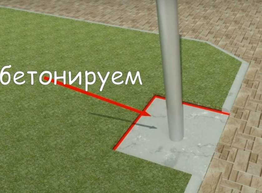 - бетон нужно заливать как под саму конструкцию, так и под опорные столбы;
