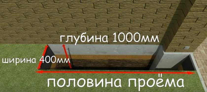 глубина – 1-1,5 м в зависимости от типа грунта на стройплощадке;