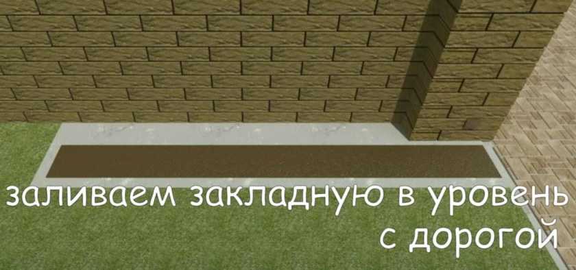- после монтажа закладных, часть траншеи требуется залить бетоном так, чтобы он целиком их не закрывал. Это необходимо для того, чтобы в будущем можно было правильно установить остальную конструкцию;