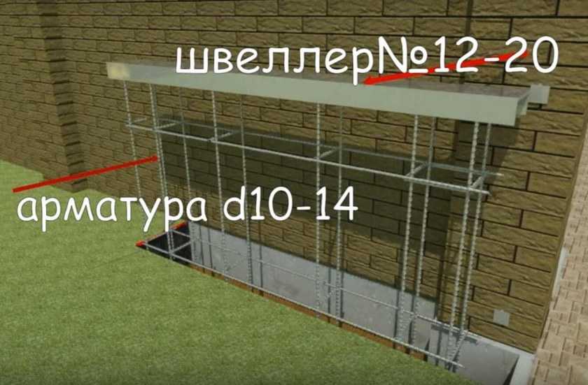 В качестве рельса обычно используют швеллер шириною 10-16 мм. К нему приваривают арматуру диаметром 10-14 мм, из которой формируют армирующий каркас.