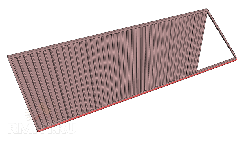 Направляющая закрепляется на трёх столбах каркаса. На самой створке устанавливаются ручка для перемещения руками и проушины для замка.