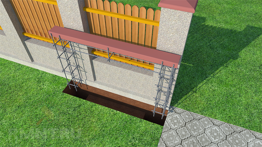 - Заливка опорных столбов.