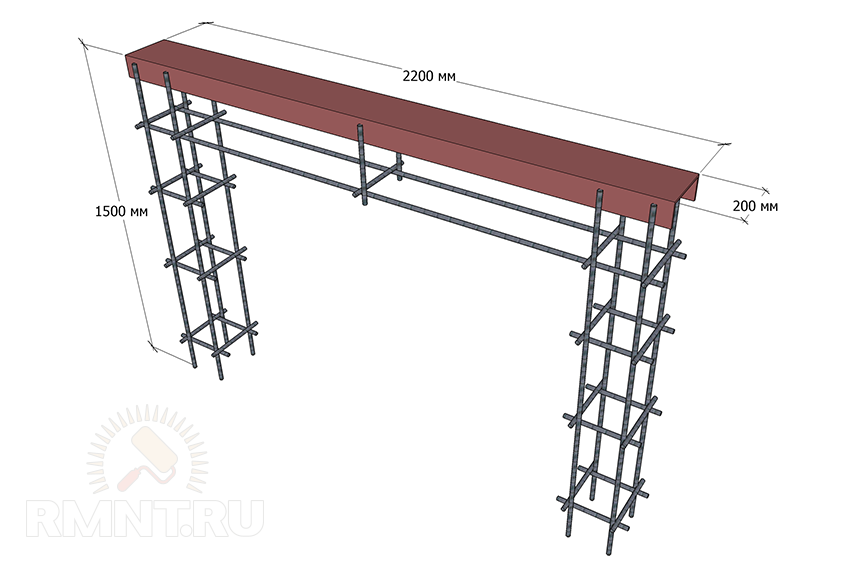 Схема каркаса для бетонирования силовой рамы