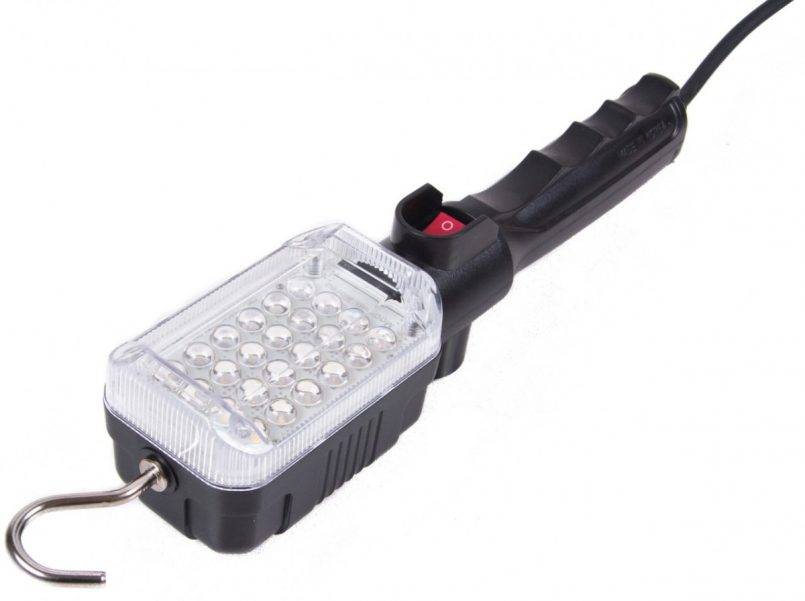 Переносные приборы освещения могут работать как от переноски, подключенной в сеть, так и на батарейках. Используются такие светильники для подсветки пространства под капотом при ремонте автомобиля, а также для подсвечивания смотровой ямы.