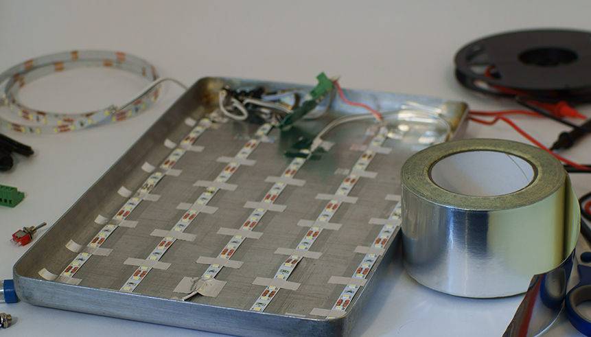 - ленту из диодов для аварийного освещения можно запитать и от аккумулятора (12В). Выбирайте теплый белый спектр, такая лента (60 светодиодов) потребляет всего 4,8 Вт;
