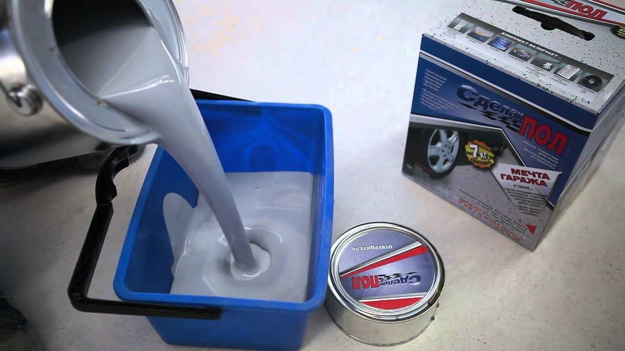 Полимерный наливной пол для гаража выпускается отечественными (Новбытхим, КрасКо) и зарубежными (Enecon, RustOleum) предприятиями в нескольких цветах, реализуется в канистрах, нередко в сочетании с отвердителем. Дополнительно комплектуется чипсами для декорирования покрытия.