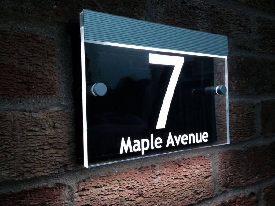 Также подсветка может обеспечиваться люминесцентными лампами и светодиодами. В этом случае это уже не табличка, а световой короб из прочного акрила, оргстекла, окантованный металлическим каркасом. Подсветка обеспечивает хорошую видимость и актуальна для номерных знаков и названия улицы.