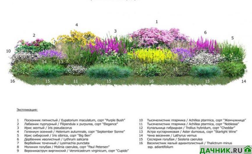 Еще одна схема посадки миксбордеров непрерывного цветения: