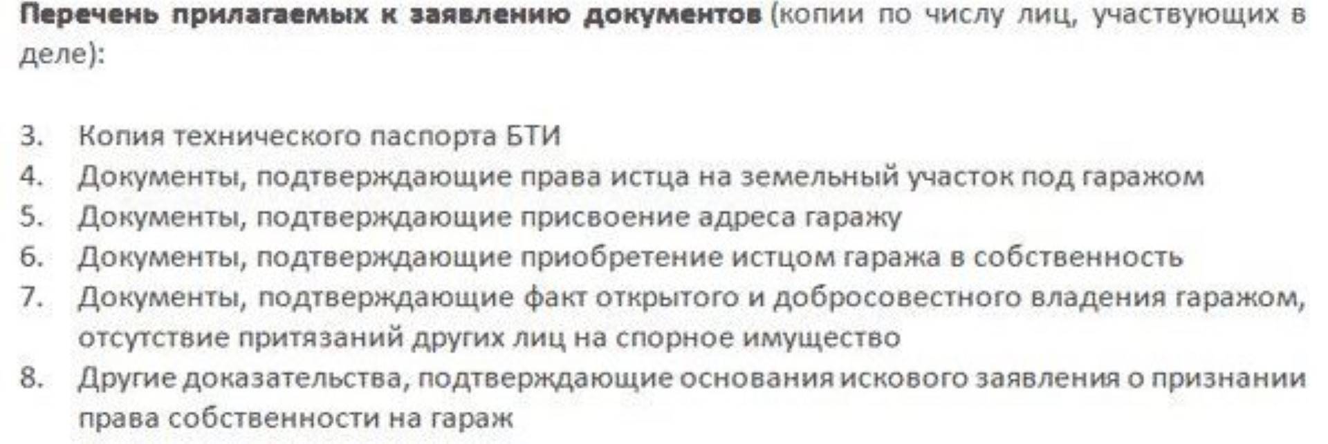 Обращаясь в суд, гражданин должен подать не только исковое заявление, но и другие документы, доказывающие его права на гараж.