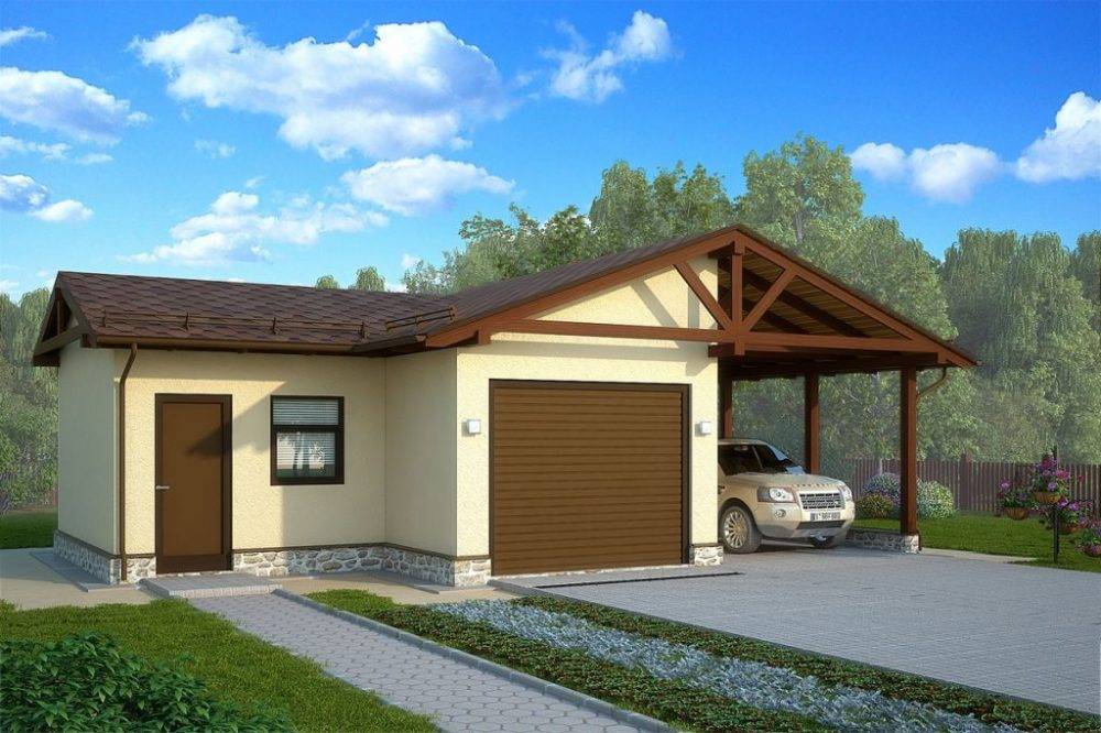 В последнее время все большей популярностью пользуются проекты гаражей с хозблоком и навесом. Они позволяют обустроить полноценное автомобильное место с минимальным расходом пространства на участке.