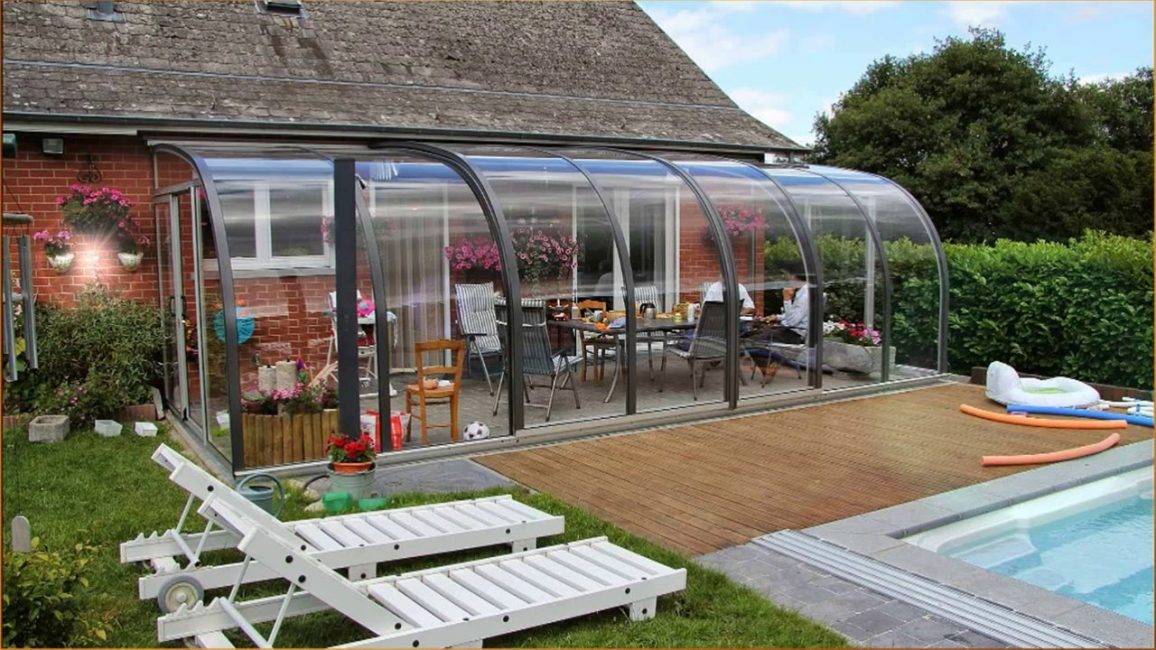 В зависимости от региона площадка для эксплуатации в холодный период оборудуется панорамными стеклопакетами. Они защищают от низкой температуры и атмосферных осадков.