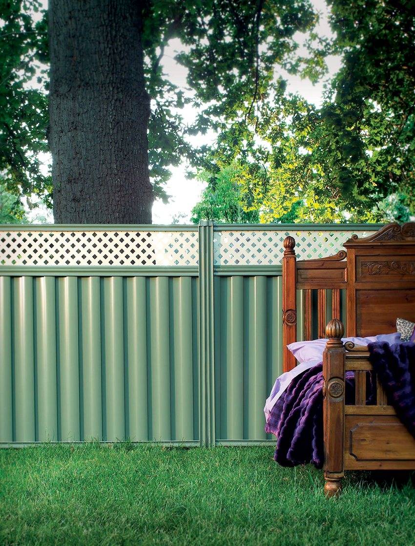 Решетка – рейки крепятся к заранее установленным штакетинам под углом 45 градусов. Они пересекаются друг с другом. Конструкция получается воздушной, через нее будут беспрепятственно проходить потоки воздуха и солнца на дачную территорию. Ограда выглядит внешне как красивая картинка.
