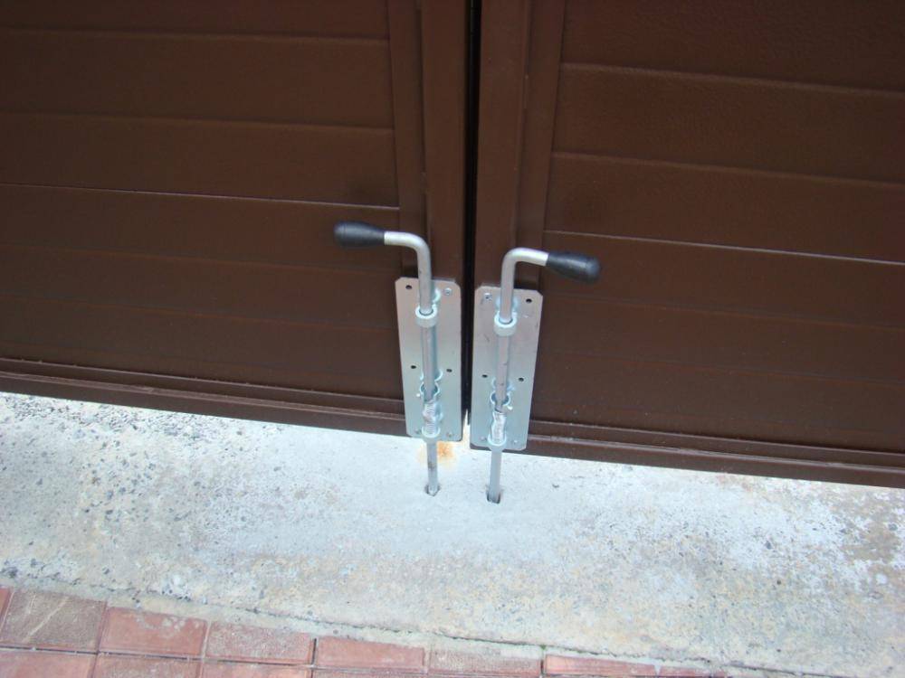 Горизонтальный запор. он размещается вверху, в центре или внизу. Его можно сделать своими руками. Это наиболее распространенный вид конструкций для гаража.