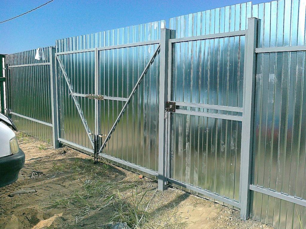 Ограждения из металла весьма популярны. Если остановить свой выбор на таком виде забора, то не возникнет сложностей с его монтажом, а материалы можно приобрести по доступным ценам. Он полностью закроет участок от любопытных взглядов соседей. Изгородь прослужит в течение длительного срока. В качестве материала для создания калитки чаще всего используется профлист.
