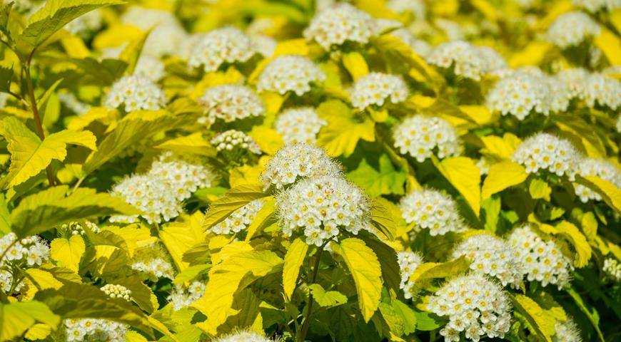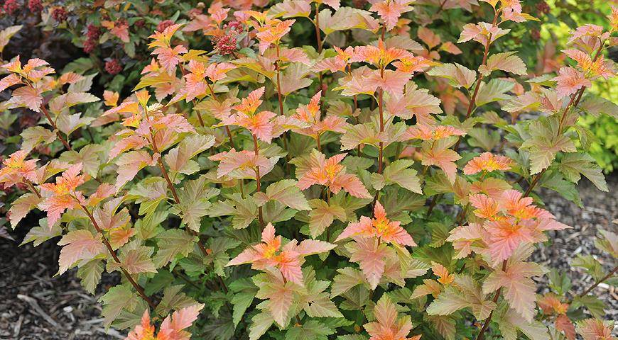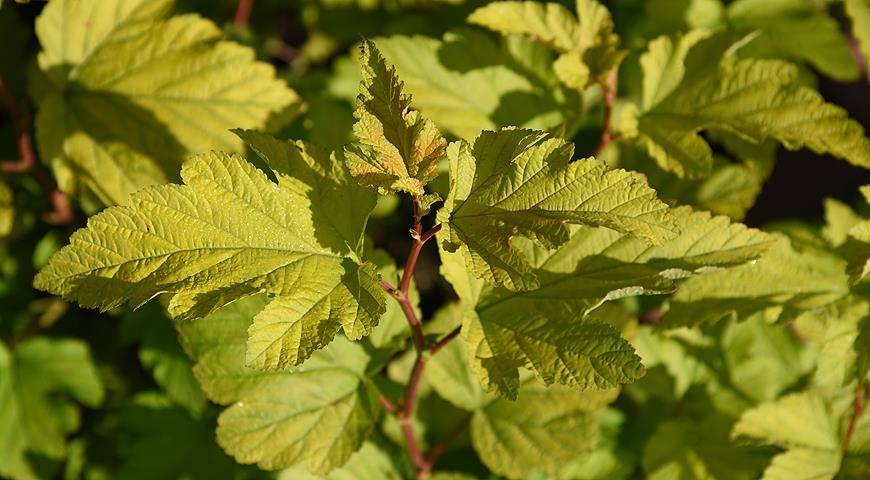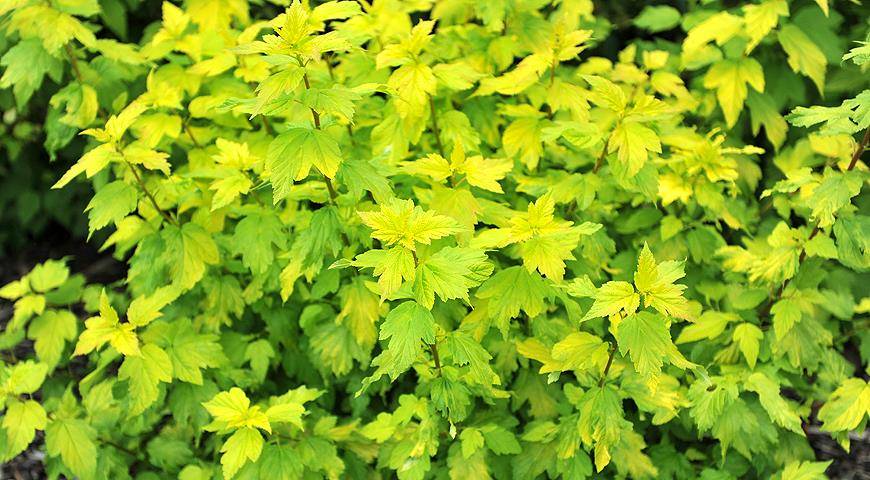 Сорта пузыреплодника с зеленоватой, лимонной, желтой и оранжевой листвой