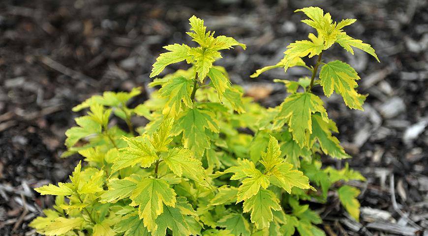 Сорта с желтыми или желто-зелеными листьями не менее декоративны, чем краснолистные разновидности пузыреплодника. Они выделяются на фоне темной зелени сада и вносят в ландшафтные композиции свежие и яркие штрихи.