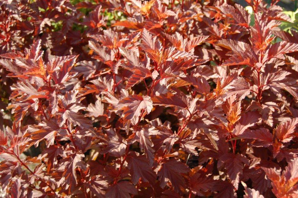 Пузыреплодник калинолистный Diabolo – эффектный сорт с темно-пурпурными глянцевыми листьями равномерной окраски и густой пышной кроной.