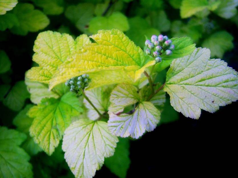 - Пузыреплодник желтеют листья – причина недостаток питательных веществ в почве. Необходимо подкормить растение азот содержащими удобрениями.