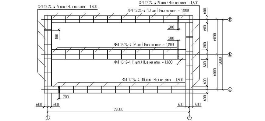 На основании данных получается чертеж ленточного фундамента.