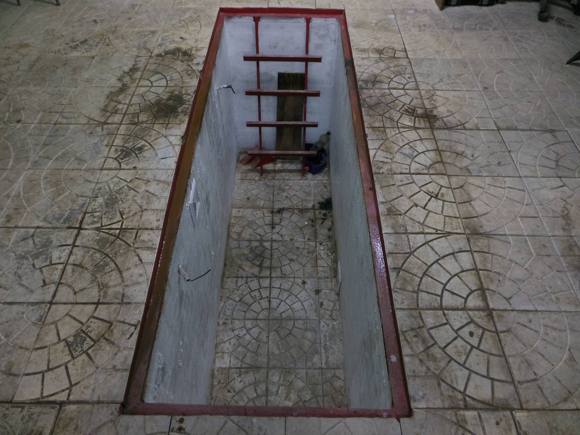 Если в гараже есть яма, размечайтесь с учётом её геометрии. Иногда имеет смысл начинать целой керамикой от ямы, но каждый случай индивидуален.