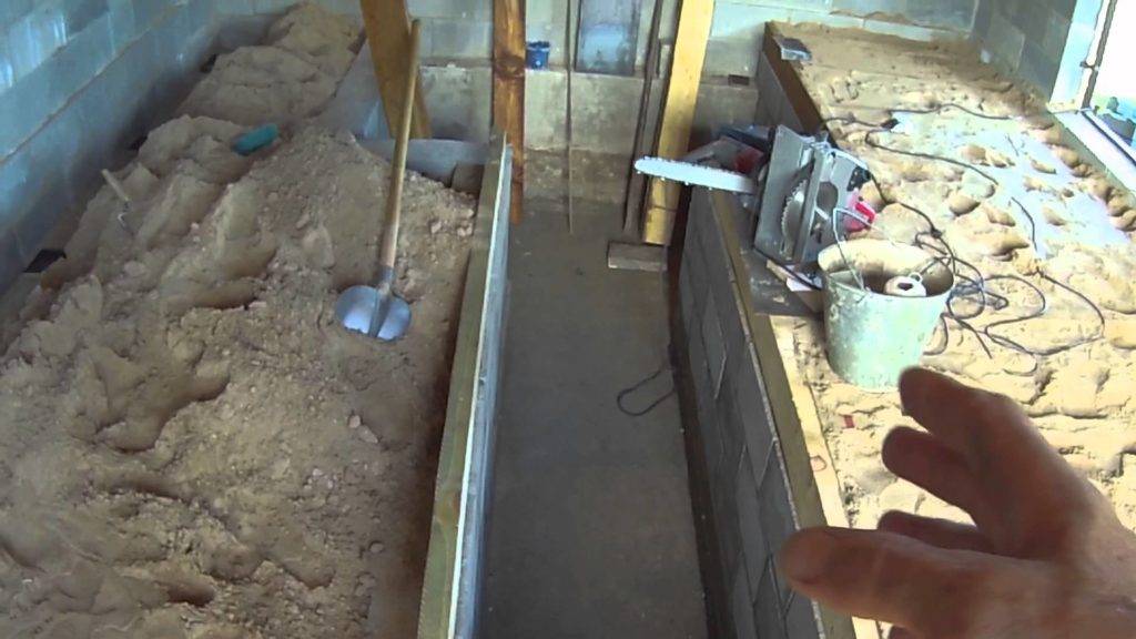 В готовом гараже придется действовать вручную, манипулируя лопатами. При помощи ведер материал удаляется из котлована под яму и вывозится тачками за пределы помещения. В итоге должна получиться выемка со средними габаритами 1800*1100*6000 мм (или иными).