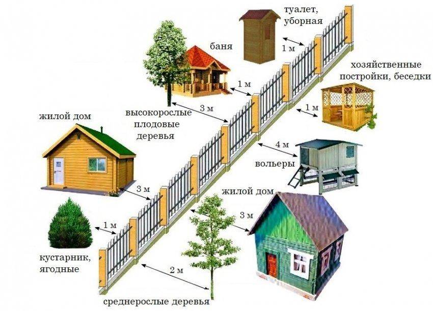 На каком расстоянии от забора можно строить нежилые строения на участке? Нормативные расстояния от забора для некоторых построек: