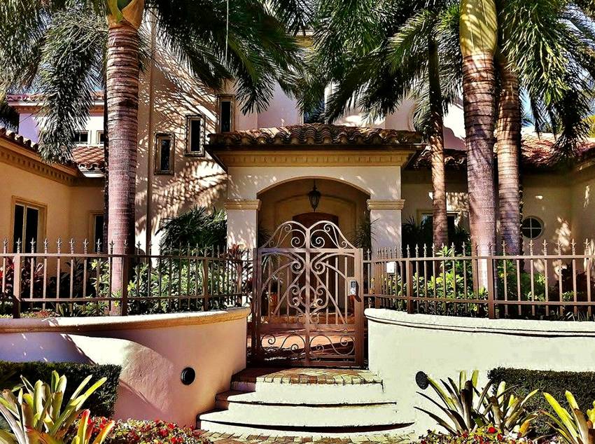 Нестареющая черная ковка с серебряными или позолоченными элементами в самый раз. Прекрасно подходит к кирпичным или оштукатуренным домам.