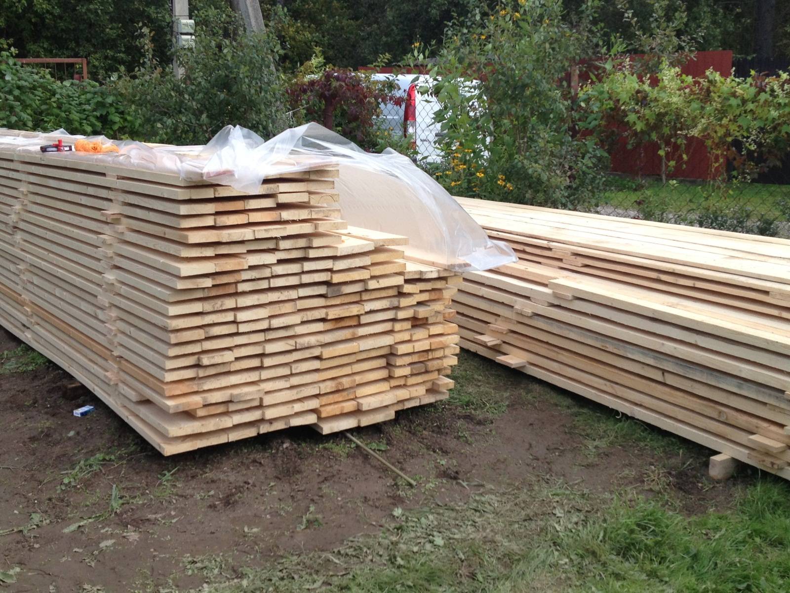 После разработки проекта необходимо приобрести и завезти на строительную площадку определенное количество материала. Так как гараж невозможно построить за один день, необходимо доски складировать. Для этого возводят алюминиевый или деревянный временный навес, чтобы укрыть материал от возможных дождей. Как правило, сверху натягивают полиэтилен. Стоит помнить, что доски должны проветриваться.