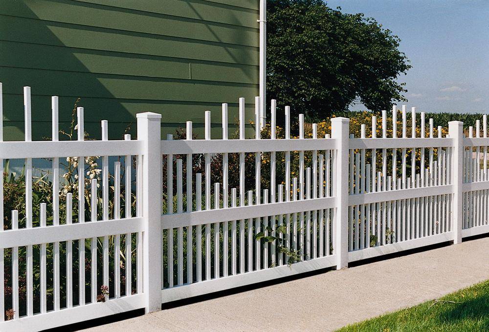Штакетник. Суть такого забора проста: узкие доски или рейки одинаковой длины и ширины вертикально прибиваются к одной или двум поперечным направляющим вплотную или с небольшими зазорами. Штакетник может быть деревянным, выполненным из профлиста или пластмассы.