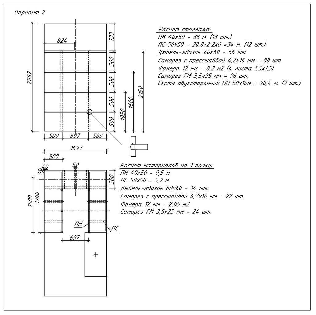 Для расчета необходимого количества материала следует предварительно сделать чертеж будущего стеллажа.