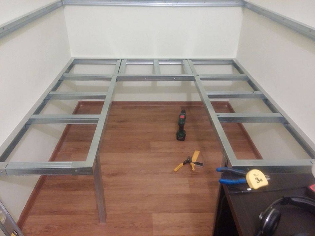 При выборе модели из профиля замеряют высоту стены, отмечают место расположения будущего стеллажа. Для самостоятельной сборки покупают готовый резанный на части профиль. К комплекту материала прилагают инструкцию, по которой без труда собирается этажерка.