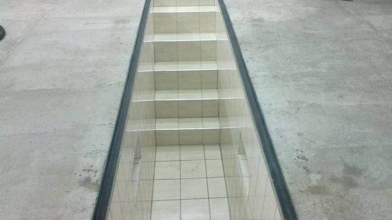 Обратите внимание: контрастная отделка периметра смотровой ямы, а часто и подсветка – не прихоть и не дань эстетике! Это элементарная мера предосторожности. Так легче заметить края ямы и меньше риск провалиться в нее.