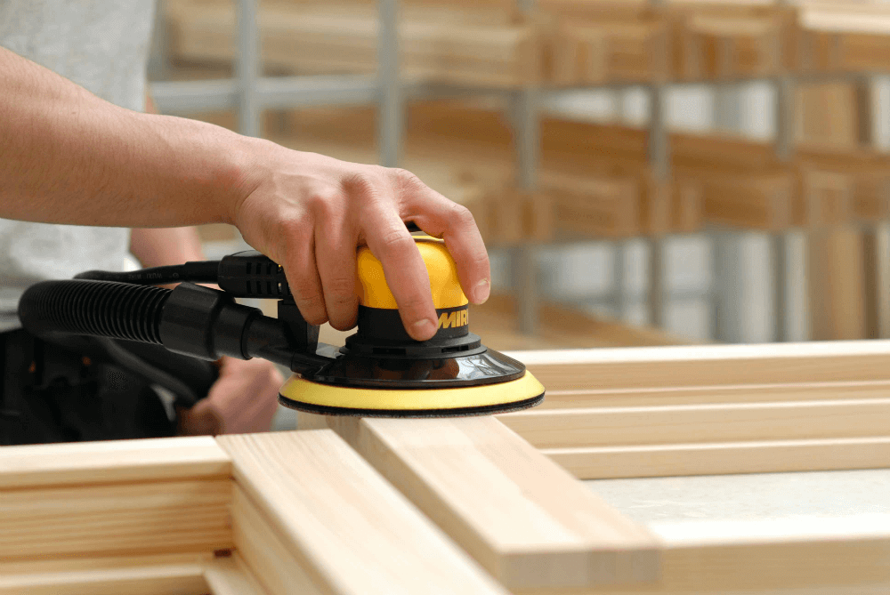 Для стеллажа из древесины придётся дополнительно приготовить валик или кисть, шлифовальную машинку и шпатель — это необходимо для проведения дополнительных покрасочных работ.