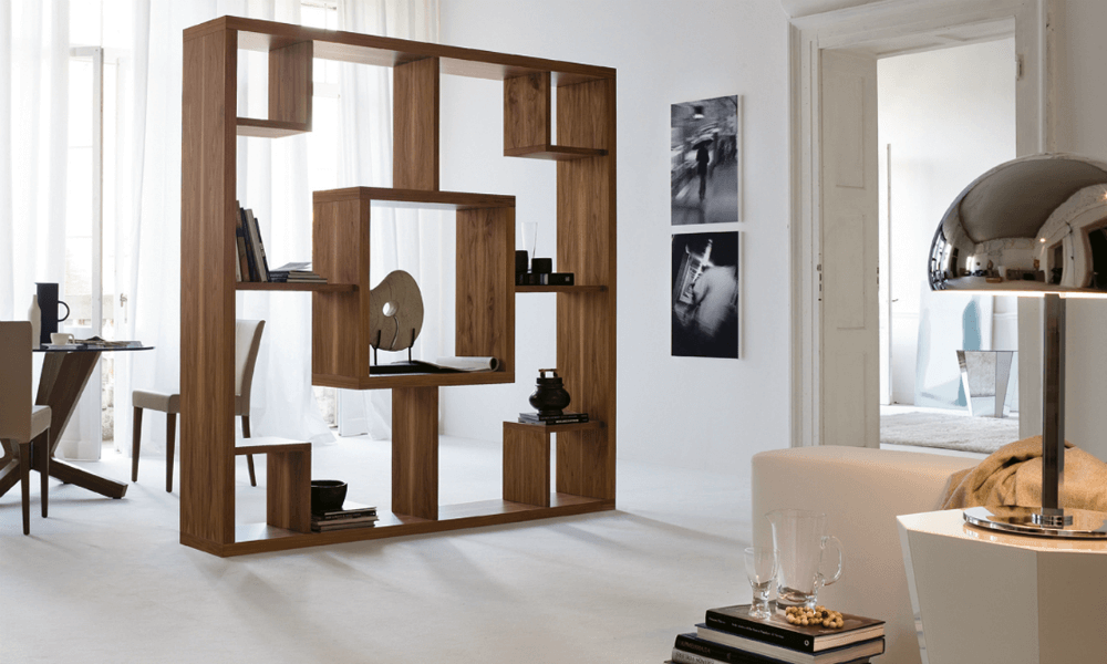 Некоторые полки можно закрыть, прикрепив к ним красивые дверцы. Такой тип стеллажа можно использовать каждый день, а его аккуратный внешний вид станет удачным и оригинальным украшением любой жилой комнаты.