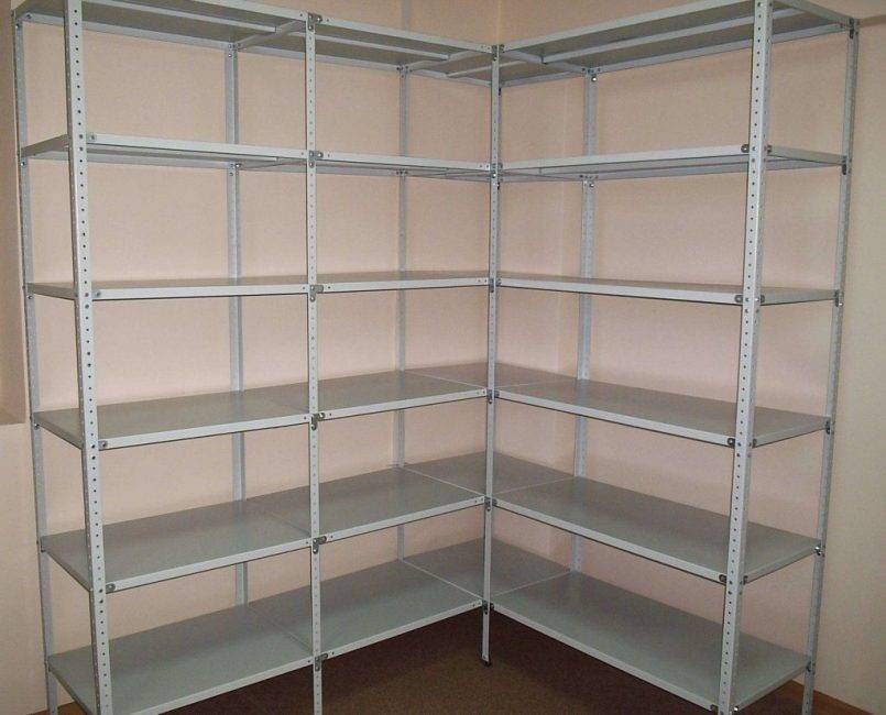 Этот вид полок изготавливается в основном с использованием стальных нержавеющих углов и листов. У таких полок есть как положительные, так и отрицательные стороны. Рассмотрим их подробнее.